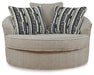 This oversized swivel accent chair caters to your need for contemporary comfort. Large in scale and decked out in feel-good fabric, it gives you space to sprawl out. And the 360-degree swivel motion makes it easy to view the TV or chat with others in your seating area. Quality time has never been so cozy.