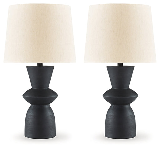 Signature Design by Ashley®Turn on the brilliance and modern flair of this table lamp set. The angular silhouette and intriguing base in distressed black are the definition o...