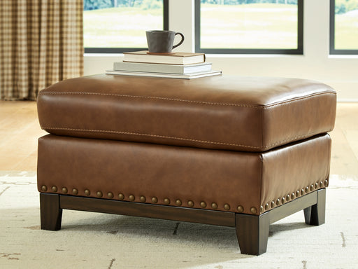 Signature Design by Ashley®A mid-century modern update to a retro classic, this ottoman is generously adaptable. Its combination of skillfully matched leather and faux leathe...