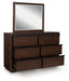 | Details | PCB857B2: Includes canopy, upholstered poster headboard, footboard, rails, posts and slats, Made with hardwood solids, mango wood veneer and MDF substrates , Side rails feature laminated solid hardwood slat support rails (or LVL) with glued and screwed blocking for added strength, Complex, rich dark brown finish, Foam headboard cushion with polyester upholstery , Measure room, including ceiling height, to ensure bed clears fans and light fixtures, Foundation/box spring required, sold separately , Mattress available, sold separately , USB-A and USB-C charging ports, Power cord included; UL Listed, Assembly required, PCB857B1: Made with hardwood solids, mango wood veneer and MDF substrates , Complex, rich dark brown finish, Full-length metal rail pulls with matte black finish, 6 smooth-gliding drawers with fully finished interiors, dovetail construction and heavy-duty ball-bearing side glides (top drawers felt lined), Mirror attaches to back of dresser, Soft rounded pilasters, Raised plinth base, PCB857-46: Made with hardwood solids, mango wood veneer and MDF substrates, Complex, rich dark brown finish, Metal rail pulls with matte black finish, 5 smooth-gliding drawers with fully finished interiors, dovetail construction and heavy-duty ball-bearing side glides (top drawer felt lined), Soft rounded pilasters, Raised plinth base, PCB857-92: Made with hardwood solids, mango wood veneer and MDF substrates, Complex, rich dark brown finish, Metal rail pulls with matte black finish, 2 smooth-gliding drawers with fully finished interiors, dovetail construction and heavy-duty ball-bearing side glides (top drawer felt lined), Soft rounded pilasters, Raised plinth base, | |