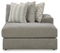Details Includes 4 modular pieces: left-arm facing corner chair, 2 armless chairs and right-arm facing corner chaise, "Left-arm" and "right-arm" describe the position of the arm when you face the piece, Corner-blocked frame, Reversible seat and back cushions, High-resiliency foam cushions wrapped in poly fiber, Accent pillows included, Pillows with feather-fiber blend, Polyester chenille/polyester upholstery, Non-skid legs, Platform foundation system resists sagging 3x better than spring system after 20,000 testing cycles by providing more even support, Smooth platform foundation maintains tight, wrinkle-free look without dips or sags that can occur over time with sinuous spring foundations, Modular pieces can float anywhere; sides are finished (with no connectors)