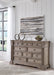 Discover something exceptional with this dresser. Its impressive silhouette offers a casual traditional aesthetic, embodied by classic-inspired columns and a relaxed grayish brown finish. Inset framed drawers of various sizes are casually cool and packed with ample storage possibilities.
