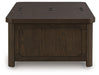 Details Made with hardwood solids, oak veneer and MDF substrate, Dark brown wood-tone finish with rich dark grain contrast, 2-sided hinged top opens to reveal storage, Assembly required