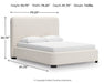| Details | Includes upholstered headboard, footboard and rails, Made with engineered wood frames, solid wood blocking, foam and fabric, Side rails feature laminated solid hardwood slat support rails (or LVL) with glued and screwed blocking for added strength, Polyester upholstery, Next-Gen Nuvella™ is a performance fabric that is soft, easy to clean, stain-resistant and durable, Clean fabric with mild soap and water, let air dry; for stubborn stains, use a solution of 4 oz. bleach to 28 oz. water, Foundation/box spring required, sold separately, Mattress available, sold separately, Assembly required | |