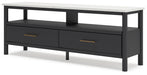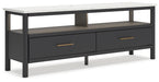 This TV stand reflects your sophisticated approach to boho style. Crafted with both form and function in mind, its replicated marble top beautifully contrasts a matte black finish. Ambient lighting and drawers for media storage make it a chic and convenient living room companion. And the versatile design suits all-neutral spaces or blends with your favorite pops of color. It’s inviting, yet posh. Luxe, yet laid-back. With this TV stand, your free-spirited vibe meets modern design.