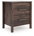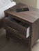 Details Made with engineered wood (MDF/particleboard/plywood) and decorative laminate for the right balance of affordability and durability, Rich brown finish over replicated walnut wood grain with authentic touch, Decorative laminate replicates natural or man-made material surfaces with consistent color, pattern and texture, Burnished goldtone pulls, 2 smooth-gliding drawers with vinyl-wrapped sides and back, Assembly required