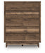 | Details | Made with engineered wood (MDF/particleboard/plywood) and decorative laminate for the right balance of affordability and durability, Warm natural brown finish over replicated walnut grain with authentic touch, Decorative laminate replicates natural or man-made material surfaces with consistent color, pattern and texture, Integrated drawer pulls, 5 smooth-gliding drawers, Drawer interiors are lined with a faux linen laminate for a clean, finished look, Safety is a top priority, clothing storage units are designed to meet the most current standard for stability, ASTM F 2057 (ASTM International), Drawers extend out to accommodate maximum access to drawer interior while maintaining safety, Minor assembly required | |