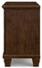 Details Made with hardwood solids, birch veneer and MDF substrate, Brownish cherry finish, 2 smooth-gliding drawers with dovetail construction and ball-bearing side glides, Round metal drawer knobs with satin nickel-tone finish, Tapered feet, Framed drawer fronts