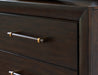 | Details | Includes dresser and mirror, Dresser made with hardwood solids, birch veneer and MDF substrate; mirror made with solid wood, Merlot finish, Solid wood pulls with brass-tone metal accents, 6 smooth-gliding drawers with fully finished interiors, French/English dovetail construction and heavy-duty ball-bearing side glides, Top drawers felt lined, Round tapered legs, Mirror attaches to back of dresser | |