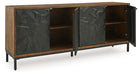 Revamp your home with this stylish accent cabinet. Featuring four doors with a captivating textured pattern, it instantly becomes the centerpiece of your room. The cabinet's interior shelves make it versatile for use as a buffet, console or media cabinet. It's a smart choice that elevates your home on multiple levels.