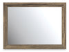 Casually cool style and clean lines go hand in hand with this bedroom mirror. A weathered brown finish over replicated oak grain creates an easygoing vibe, setting the scene in your restful retreat. The fuss-free, versatile piece can be mounted on a wall or dresser.