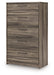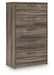 Details Made with engineered wood (MDF/particleboard/plywood) and decorative laminate for the right balance of affordability and durability, Weathered brown finish over replicated oak grain with authentic touch, Decorative laminate replicates natural or man-made material surfaces with consistent color, pattern and texture, Linear pulls with antiqued gunmetal finish, 5 smooth-gliding drawers, Drawer interiors are lined with a faux linen laminate for a clean, finished look, Safety is a top priority, clothing storage units are designed to meet the most current standard for stability, ASTM F 2057 (ASTM International), Drawers extend out to accommodate maximum access to drawer interior while maintaining safety