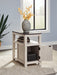 | Details | Made with MDF substrates and decorative paper laminate, Two-tone finish (replicated gray wood top and antiqued white base), 1 storage cabinet, 1 open display shelf, USB-A and USB-C charging ports, Power cord included; UL Listed | |