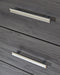 | Details | B214B1: Made of engineered wood (MDF/particleboard) and decorative laminate, Gray finish with replicated wood grain, Faceted chrome-tone pulls and accents, 6 smooth-operating drawers, Drawers lined with faux linen laminate, Mirror attaches to back of dresser, Includes tipover restraint device, Assembly required, B214B4: Includes headboard, footboard and side rails, Made of engineered wood (MDF/particleboard) and decorative laminate, Gray finish with replicated wood grain, Faux leather upholstery, Faux crystal and faceted chrome-tone metal accents, Accent LED lights with remote to control color and brightness, Power cord included; UL Listed, Mattress and foundation/box spring available, sold separately, Assembly required, Bed is compatible with an adjustable base, | |