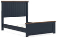 | Details | B414B3: Includes panel headboard, footboard, rails and slats, Made with hardwood solids, mindi wood veneer and MDF substrates, Two-tone finish features a dark slate blue with a light brown wood-tone top, Foundation/box spring required, sold separately, Mattress available, sold separately, Assembly required, B414B1: Includes dresser and mirror, Made with hardwood solids, mindi wood veneer and MDF substrates, Two-tone finish features a dark slate blue with light brown wood-tone top, Nickel-tone metal knobs, 6 drawers with fully finished interior, dovetail construction and heavy duty ball-bearing side glides, Mirror attaches to back of dresser, B414-92: Made with hardwood solids, mindi wood veneer and MDF substrates, Two-tone finish features a dark slate blue with a light brown wood-tone top, Nickel-tone metal knobs, 2 drawers with fully finished interior, dovetail construction and heavy duty ball-bearing side glides, | |