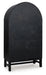 Details Made with hardwood solids, mango wood veneer, MDF substrate and metal, Two-tone finish (black and medium brown), Dark pewter-tone knobs, 2 glass-front doors with black metal frames, 3 fixed shelves, Assembly required