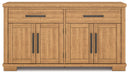 | Details | Made with rubberwood solids, distressed pine veneers and MDF substrates, Distressed light brown pine finish, Metal bar pulls with black finish, Top surface with distressed planked effect, 4-door cabinet with 2 adjustable wood shelves, 2 drawers with black felt bottoms, fully finished interiors and ball-bearing side glides | |