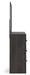 Details Includes dresser and mirror, Made with engineered wood (MDF/particleboard/plywood) and decorative laminate for the right balance of affordability and durability , Charcoal finish over replicated oak grain with authentic touch, Decorative laminate replicates natural or man-made material surfaces with consistent color, pattern and texture, Large-scale dark colored handles, 6 smooth-gliding drawers, Drawer interiors are lined with a faux linen laminate for a clean, finished look , Mirror attaches to back of dresser; can also be mounted on wall horizontally or vertically, Safety is a top priority, clothing storage units are designed to meet the most current standard for stability, ASTM F 2057 (ASTM International), Drawers extend out to accommodate maximum access to drawer interior while maintaining safety, Minor assembly required