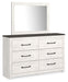 | Details | B1190B9: Includes king panel headboard, footboard and rails, Made with engineered wood (MDF/particleboard) and decorative laminate, White rustic finish with replicated cedar grain and authentic touch, 2 decorative sconce lights, Lights in matte black finish with champagne-colored accents, Headboard with abstract design, Power cord included; UL Listed, Foundation/box spring required, sold separately, Mattress not included, sold separately, Assembly required, Bed is compatible with an adjustable base, B1190B1: Includes dresser with mirror, Made of engineered wood (MDF/particleboard) and decorative laminate, White rustic finish with replicated cedar grain, Rustic gray planked replicated oak grain with authentic touch, 6 smooth-gliding drawers with faux linen lining, Large scale dark colored handles, Mirror attaches to back of dresser, Assembly required, | |