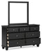 | Details | B687B8: Includes king panel headboard, footboard and rails, Made with hardwood solids, birch veneer and MDF substrate, Black painted finish, Thick profiled tops, Tapered feet, Foundation/box spring required, sold separately, Mattress available, sold separately, Assembly required, Bed is compatible with an adjustable base, B687B1: Includes dresser and mirror, Made with hardwood solids, birch veneer and MDF substrate, Black painted finish, 7 smooth-gliding drawers with dovetail construction and ball-bearing side glides, Round metal drawer knobs with satin nickel-tone finish, Framed drawer fronts, Tapered feet, Mirror attaches to back of dresser, Assembly required, B687-92: Made with hardwood solids, birch veneer and MDF substrate, Black painted finish, 2 smooth-gliding drawers with dovetail construction and ball-bearing side glides, Round metal drawer knobs with satin nickel-tone finish, Framed drawer fronts, Tapered feet, | |