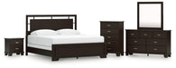 Covetown King Panel Bed with Mirrored Dresser, Chest and Nightstand