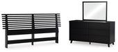 | Details | B1013-158: Made with engineered wood (MDF/particleboard/plywood) and decorative laminate for the right balance of affordability and durability, Matte black finish with subtle replicated wood grain, Decorative laminate replicates natural or man-made material surfaces with consistent color, pattern and texture, ¼" bolts (not included) are needed to attach headboard to your existing bed frame, Minor assembly required, B1013B11: Includes dresser and mirror, Made with engineered wood (MDF/particleboard/plywood) and decorative laminate for the right balance of affordability and durability, Matte black finish with subtle replicated wood grain, Decorative laminate replicates natural or man-made material surfaces with consistent color, pattern and texture, 6 smooth-gliding drawers, Drawer interiors are lined with a faux linen laminate for a clean, finished look, Integrated drawer pulls, Framed front and pilasters, Mirror attaches to back of dresser; can also be mounted on wall horizontally or vertically, Safety is a top priority, clothing storage units are designed to meet the most current standard for stability, ASTM F 2057 (ASTM International), Drawers extend out to accommodate maximum access to drawer interior while maintaining safety, Minor assembly required, | |