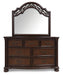 | Details | B764B9: Includes poster headboard/footboard panels, rails and headboard posts, Made with hardwood solids, cherry veneer with MDF substrates, decorative cast resin and furniture grade plastic components , Cherry brown finish, Headboard with metallic accent filigree, Foundation/box spring required, sold separately, Mattress available, sold separately, Assembly required, B764B1: Includes dresser and mirror, Made with hardwood solids, cherry veneer with MDF substrates, decorative cast resin and furniture grade plastic components , Cherry brown finish, Decorative metal drawer pulls with dark bronze-tone finish, 7 drawers with fully finished interior, dovetail construction and ball-bearing side glides, Mirror attaches to back of dresser, B764-46: Made with hardwood solids, cherry veneer with MDF substrates, decorative cast resin and furniture grade plastic components, Cherry brown finish, Decorative metal drawer pulls with dark bronze-tone finish, 5 drawers with fully finished interior, dovetail construction and ball-bearing side glides, B764-93: Made with hardwood solids, cherry veneer with MDF substrates, decorative cast resin and furniture grade plastic components, Cherry brown finish, Decorative metal drawer pulls with dark bronze-tone finish, 2 drawers with fully finished interior, dovetail construction and ball-bearing side glides, Pull-out tray behind bottom drawer, | |