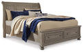 Lettner King Sleigh Bed with 2 Storage Drawers with Mirrored Dresser, Chest and Nightstand