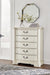| Details | B980B4: Includes headboard, footboard and rails, Made with hardwood solids, spruce veneer, MDF substrates and cast resin components , Antiqued white painted finish, Polyester upholstery, Button tufting, Foundation/box spring required, sold separately, Mattress available, sold separately, Assembly required, B980B1: Includes dresser and mirror, Made with hardwood solids, spruce veneer, MDF substrates and cast resin components, Antiqued white painted finish, 9 drawers with fully finished interiors, French and English dovetail construction and ball-bearing side glides, Metal bar pulls with aged pewter-tone finish, Mirror attaches to back of dresser, B980-46: Made with hardwood solids, spruce veneer, MDF substrates and cast resin components, Antiqued white painted finish, 5 drawers with fully finished interiors, French and English dovetail construction and ball-bearing side glides, Metal bar pulls with aged pewter-tone finish, B980-93: Made with hardwood solids, spruce veneer, MDF substrates and cast resin components, Antiqued white painted finish, 3 drawers with fully finished interiors, French and English dovetail construction and ball-bearing side glides, Metal bar pulls with aged pewter-tone finish, 110V power supply with dual USB charging ports, Power cord included; UL Listed, | |