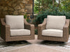 | Details | All-weather resin wicker handwoven over rust-resistant aluminum frame with durable powder coated finish, Solution-dyed high-performance fabric, Nuvella is an outdoor fabric that can be cleaned and offers UV resistance, Clean fabric with mild soap and water, let air dry; for stubborn stains, use a solution of 4 oz. bleach to 28 oz. water, Stainless steel hardware, Designed to withstand the harsh elements of the outdoors, 360-degree swivel, Assembly required | |