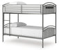 | Details | Made with welded tubular steel frame, Durable steel gray powder coat finish, Tubular steel slats for mattress support, Top bunk with protective side rails, Sturdy ladder leads to top bunk, Ladder with left or right side convertibility, Bunk can convert into two twin beds, Bed does not require additional foundation/box spring, Mattress available, sold separately, The Consumer Product Safety Commission states top bunks not be used for children under 6 years of age, Assembly required | |