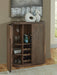 | Details | Made with solid mango wood, Back made with mango wood veneer and engineered wood substrate, Medium brown finish, Cutout handles, 2 doors, 5 fixed shelves, 3 rows of wine bottle holders, 2 rows of wine glass holders | |