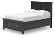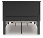 Details Includes panel headboard, storage footboard with roll slats and rails , Made with hardwood solids, birch veneer and MDF substrate, Side rails feature laminated solid hardwood slat support rails (or LVL) with glued and screwed blocking for added strength, Black painted finish, Round metal knobs with satin nickel-tone finish, 2 smooth-gliding drawers in footboard, Tapered feet, Bed does not require additional foundation/box spring; accommodates most zero clearance adjustable bases with the addition of a bunkie board, Mattress available, sold separately, Assembly required