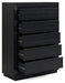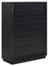 | Details | Made with pine solids, veneers and engineered wood substrate, Textured black wood stain with waxy topcoat, Hardware-less design, 5 drawers with fully finished interiors, dovetail construction and ball-bearing side glides (top drawers with felt-lined bottoms) | |
