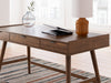 A refreshed take on retro aesthetics. This home office desk adds an air of playful simplicity to your workspace, capturing the architectural language of mid-century stylings. Subtle in design, it invites the eye with a sleek, open frame. A casual, yet timeless, finish and three storage drawers complete this study in form and function.