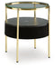 | Details | Made with engineered wood, glass and metal, Goldtone finish, Glass top, Black polyester fabric on sides, Tabletop with wireless charging and touch-button controls, 6.5" full-range speaker; 2" tweeter speaker, Wireless connection; aux audio input; USB-C charging, Assembly required | |