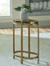 Beautifully punctuate the end of a sofa with this accent table. Its goldtone finish provides an eye-catching contrast to the thick iridescent tabletop. Small in stature but big on style, it’s an ideal resting place for refreshments, remotes or small decorative accents.