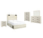| Details | B192-46: Made of engineered wood (MDF/particleboard) and decorative laminate, Wispy white finish over replicated oak grain with authentic touch, Large-scale hardware with dark finish, 5 smooth-gliding drawers, Drawer interiors are lined with a faux linen laminate for a clean, finished look, Safety is a top priority, clothing storage units are designed to meet the most current standard for stability, ASTM F 2057 (ASTM International), Drawers extend out to accommodate maximum access to drawer interior while maintaining safety, B192-92: Made of engineered wood (MDF/particleboard) and decorative laminate, Wispy white finish over replicated oak grain with authentic touch, Large-scale hardware with dark finish, 2 smooth-gliding drawers, Drawers lined with faux linen laminate for finished aesthetic, 2 slim-profile USB charging stations, Power cord included; UL Listed, B192B1: Includes dresser with mirror, Made of engineered wood (MDF/particleboard) and decorative laminate, Wispy white finish over replicated oak grain with authentic touch, 6 smooth-gliding drawers, Drawer interiors are lined with a faux linen laminate for a clean, finished look, Large-scale hardware with dark finish, Mirror attaches to back of dresser, Assembly required, B192B17: Includes headboard, footboard, side storage, rail and slats, Made of engineered wood (MDF/particleboard) and decorative laminate, Wispy white finish over replicated oak grain with authentic touch, Large-scale hardware with dark finish, 2 decorative sconce lights, LED with 3 AA batteries, 2 smooth-gliding storage drawers, 2 storage cubbies, 2 slim-profile USB charging ports, Power cord included; UL-listed, Bed does not require additional foundation/box spring; accommodates most zero clearance adjustable bases with the addition of a bunkie board, Mattress available, sold separately, Assembly required, | |