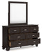 | Details | B441B6: Includes panel headboard, footboard, rails and slats, Made with hardwood solids, engineered wood veneer and MDF substrates, Dark brown finish, Floating panel headboard, Picture frame footboard, Foundation/box spring required, sold separately , Mattress available, sold separately, Assembly required, B441B1: Includes dresser and mirror, Made with hardwood solids, engineered wood veneer and MDF substrates, Dark brown finish, Metal bar pulls with bright nickel-tone finish, 7 smooth-gliding drawers with dovetail construction and metal center guides, Drawer interiors are lined with a wood grain laminate for a clean, finished look, Top moulding on dresser, Mirror attaches to back of dresser, B441-46: Made with hardwood solids, engineered wood veneer and MDF substrates, Dark brown finish, Metal bar pulls with bright nickel-tone finish, 5 smooth-gliding drawers with dovetail construction and metal center guides, Drawer interiors are lined with a wood grain laminate for a clean, finished look, Top moulding, B441-92: Made with hardwood solids, engineered wood veneer and MDF substrates, Dark brown finish, Metal bar pulls with bright nickel-tone finish, 2 smooth-gliding drawers with dovetail construction and metal center guides, Drawer interiors are lined with a wood grain laminate for a clean, finished look, Top moulding, | |