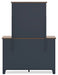 | Details | B414-57: Made with hardwood solids, mindi wood veneer and MDF substrates, Two-tone finish features a dark slate blue with a light brown wood-tone top, ¼" bolts (not included) are needed to attach headboard to your existing bed frame, Assembly required, B414B1: Includes dresser and mirror, Made with hardwood solids, mindi wood veneer and MDF substrates, Two-tone finish features a dark slate blue with light brown wood-tone top, Nickel-tone metal knobs, 6 drawers with fully finished interior, dovetail construction and heavy duty ball-bearing side glides, Mirror attaches to back of dresser, B414-45: Made with hardwood solids, mindi wood veneer and MDF substrates, Two-tone finish features a dark slate blue with a light brown wood-tone top, Nickel-tone metal knobs, 4 drawers with fully finished interior, dovetail construction and heavy duty ball-bearing side glides, B414-92: Made with hardwood solids, mindi wood veneer and MDF substrates, Two-tone finish features a dark slate blue with a light brown wood-tone top, Nickel-tone metal knobs, 2 drawers with fully finished interior, dovetail construction and heavy duty ball-bearing side glides, | |