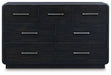 Details Made with hardwood solids and ash veneer, Black finish on textured wood grain surface, Burnished nickel-tone pulls, Waterfall edges, 7 smooth-gliding drawers with fully finished interior, dovetail construction and heavy duty ball-bearing side glides