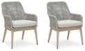 This dining arm chair invites your casual contemporary style outdoors. With its resin wicker in a chic neutral hue, it expertly marries refined design with durability. Breezy summer mornings and cold winter nights are made all the more comfortable with high-performance Nuvella+ fabric covering the seat cushion.