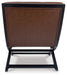 Details Attached back and seat cushions, Faux leather polyester upholstery, Exposed frame in faux wood finish, Tufted back and seat design