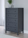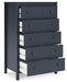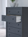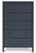 Details Made with engineered wood (MDF/particleboard/plywood) and decorative laminate for the right balance of affordability and durability, Matte navy blue finish, Decorative laminate replicates natural or man-made material surfaces with consistent color, pattern and texture, Knobs with matte navy blue finish, 5 smooth-gliding drawers with vinyl-wrapped sides and back for durability, Safety is a top priority, clothing storage units are designed to meet the most current standard for stability, ASTM F 2057 (ASTM International), Drawers extend out to accommodate maximum access to drawer interior while maintaining safety, Assembly required