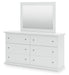 Details B139B41: Includes panel headboard/footboard and rails, Made with engineered wood (MDF/particleboard/plywood) and decorative laminate for the right balance of affordability and durability, Replicated solid white paint, Decorative laminate replicates natural or man-made material surfaces with consistent color, pattern and texture, Foundation/box spring required, sold separately, Mattress available, sold separately, Assembly required, B139B40: Includes dresser and mirror, Made of engineered wood (MDF/particleboard), Knobs with pewter-tone finish, Scalloped moulding, 6 smooth-operating drawers, Includes tipover restraint device, Mirror attaches to back of dresser; can also be mounted on wall horizontally or vertically, Safety is a top priority, clothing storage units are designed to meet the most current standard for stability, ASTM F 2057 (ASTM International), Drawers extend out to accommodate maximum access to drawer interior while maintaining safety,