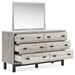 Details Includes dresser and mirror, Made with engineered wood (MDF/particleboard/plywood) and decorative laminate for the right balance of affordability and durability, Light gray finish over a replicated oak grain with authentic touch; base has matte black finish with subtle replicated wood grain, Decorative laminate replicates natural or man-made material surfaces with consistent color, pattern and texture, Handles with matte black finish, 6 smooth-gliding drawers, Drawer interiors are lined with a faux linen laminate for a clean, finished look, Mirror attaches to back of dresser; can also be hung horizontally or vertically, Safety is a top priority, clothing storage units are designed to meet the most current standard for stability, ASTM F 2057 (ASTM International), Drawers extend out to accommodate maximum access to drawer interior while maintaining safety, Assembly required
