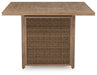 A perfect balance of design and utility, this bar table with fire pit turns any outdoor living space into your own piece of paradise. Crafted with easy-care resin wicker over an aluminum frame with the look of wood, it's the epitome of California dreamin' style. The press of a button ignites a flickering flame that dances over a bed of glass beads. And with room for up to eight, it’s one highly accommodating table.