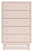 Pretty in pink. This chest of drawers keeps the spirit of your home’s modern aesthetic while suiting all your young one’s needs. Its subtle blush finish brings a playful, charming vibe to organizing clothes and other essentials. Made for her and styled for you, it’s a lovely addition to a beautifully chic child’s bedroom.